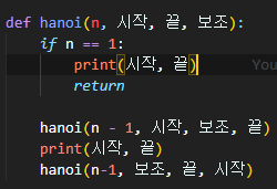 그리고 다음에 보조기둥에 있던 원판들을 차례대로 끝 기둥에 옮겨주는 함수를 한번 더 써줍니다