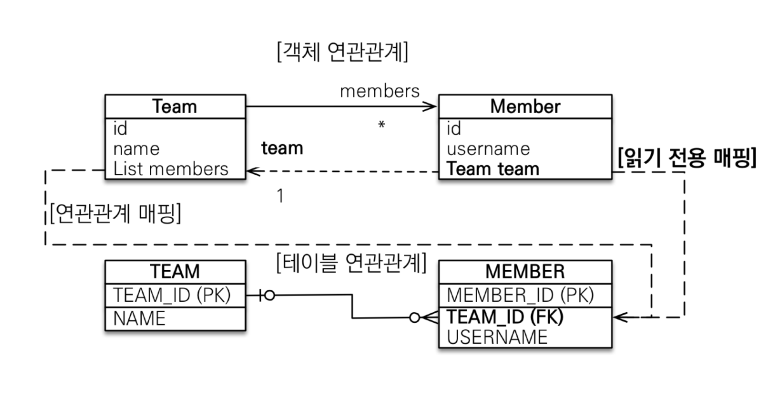 @JoinColumn(insertable=false, updatable=false) 을 사용해서 읽기 전용 필드를 만들어주고 양방향처럼 사용하는 방법입니다.