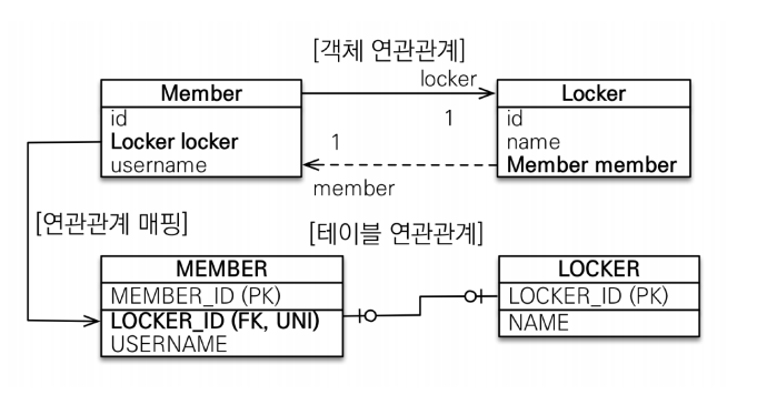 일대일[1:1] 관계 : 대상 테이블에 외래 키 양방향에서는 대상 테이블에 외래 키가 존재하는 매핑입니다. 이 방법은 전통적으로 DBA(데이터베이스 관리자)가 선호하는 방법입니다.